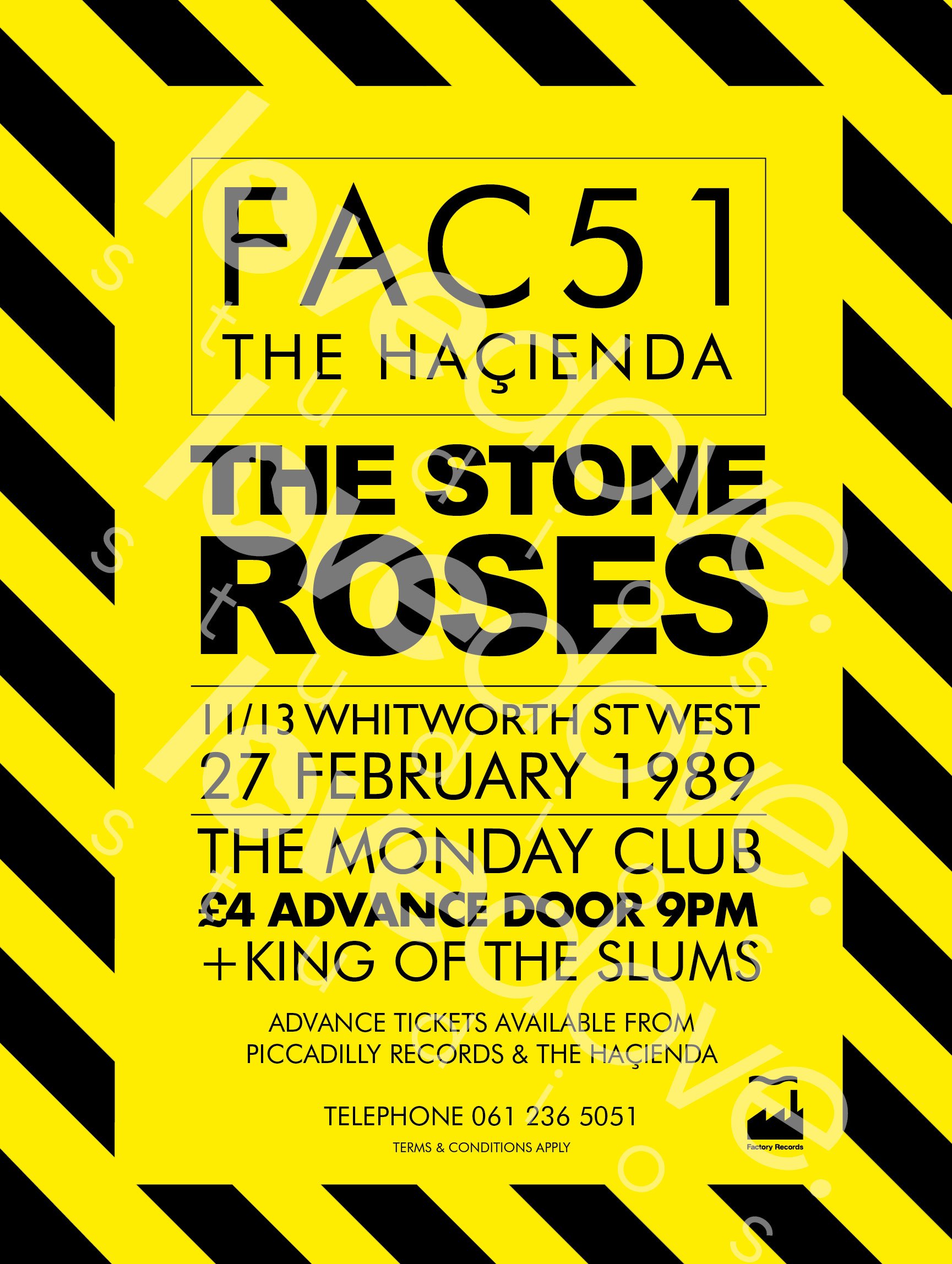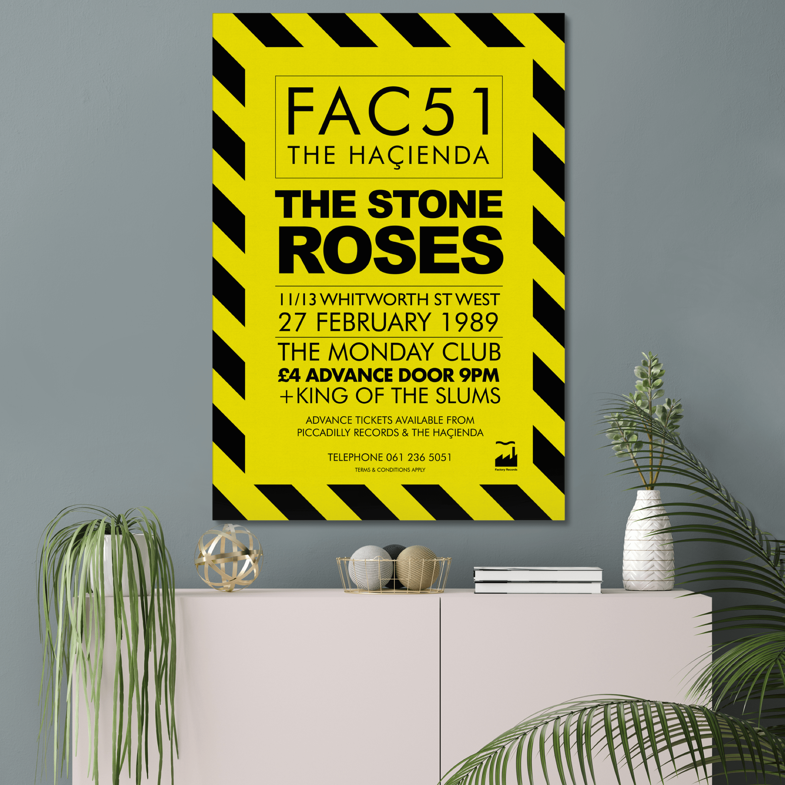 This is inspired by the promotional posters for a performance by The Stone Roses at the world famous Haçienda back in 1989.
